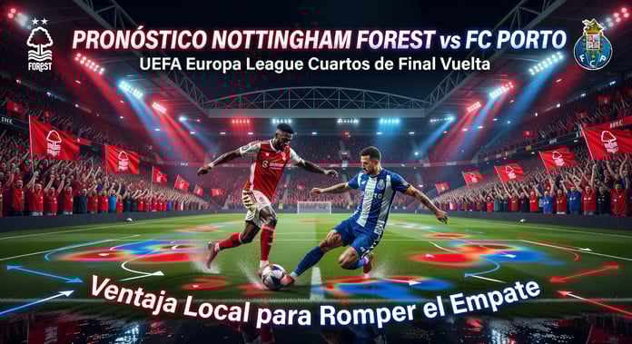 Este emocionante partido de vuelta de los cuartos de final de la UEFA Europa League entre Nottingham Forest y FC Porto se jugará el 16 de abril de 2026 a las 16:00 ART en Argentina, 15:00 EDT / 14:00 CDT / 13:00 MDT / 12:00 PDT en Estados Unidos, 16:00 CLT en Chile, 21:00 CEST en Alemania, Francia y España, y 13:00 / 14:00 CST en México, en el City Ground. Tengo una fuerte intuición de que Nottingham Forest logrará una victoria vital aquí, impulsado por su defensa local imbatible que ha concedido solo 1.2 xG por partido en recientes compromisos europeos. Porto dominó la ida con 2.16 xG contra 0.45 de Forest, pero solo sacó un empate 1-1 gracias a un autogol extraño; ahora, con la afición rugiendo, veo a los Rojos dando la vuelta a la tortilla. Mi mejor apuesta: Forest Empate No Apuesta a cuotas cercanas a par, dada la pésima marca de Porto en Inglaterra (V1 E3 D20), según análisis de predicciones de fútbol en Resultados Futbol Hoy.